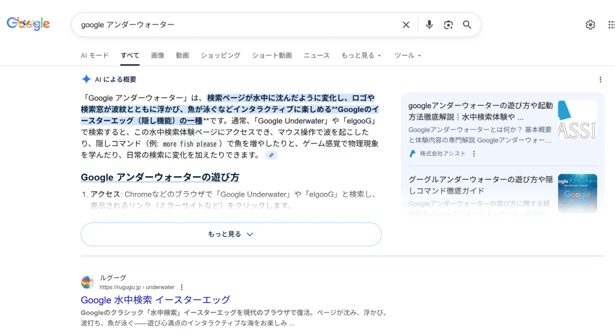 そして上の方にある「Google水中検索 イースターエッグ」と書いてるサイトをクリック。
