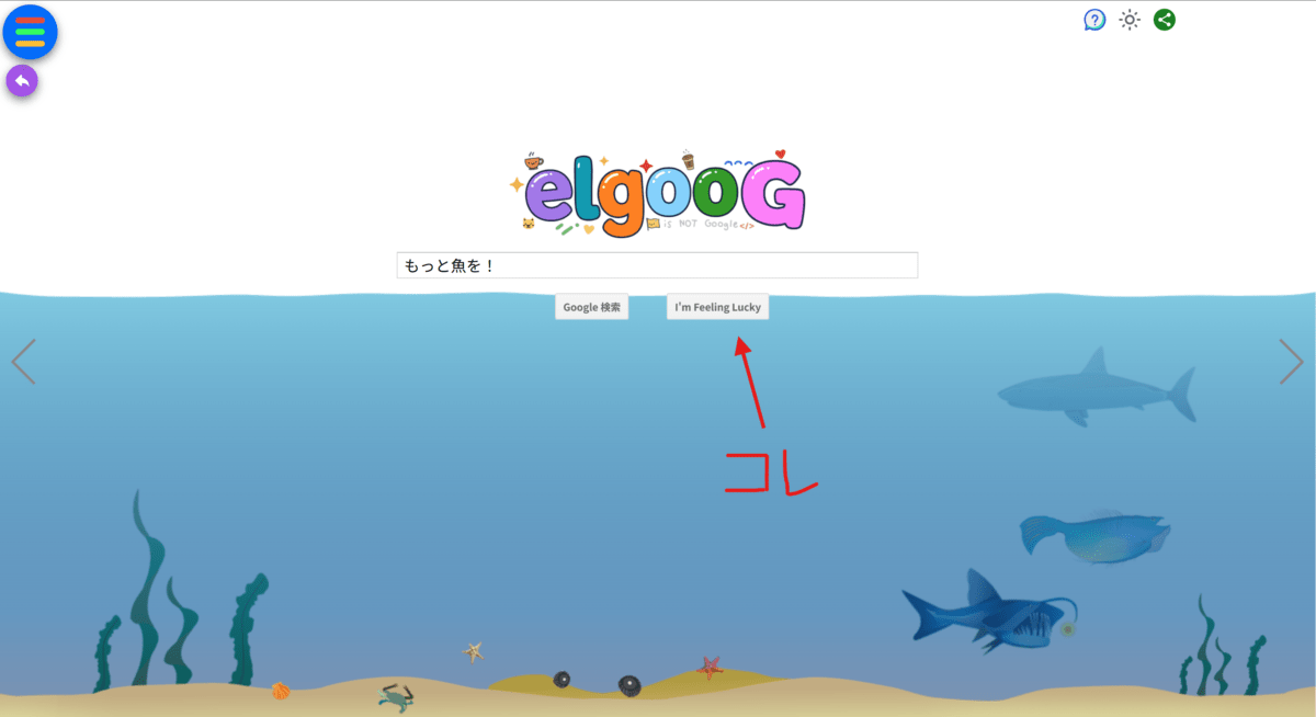 検索窓に「もっと魚を!」って書いてあるので、「もっと魚が」増えていく訳です。