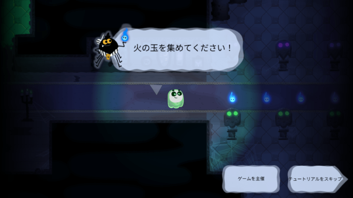 プレイヤーはおばけになり、自動的に「紫チーム」か「緑チーム」に振り分けられます。